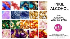 Take your creative journey to the next level with our “Inkie Alcohol” 6×6 Adhesive Washi Sheet Sets. Dive into vibrant Greens, Blues, Reds, Pinks, and Purples, each adorned with intricate alcohol ink designs on 20 stunning 6×6-inch Japanese rice paper sheets. Express yourself with “Inkie Alcohol” and let your creativity flow like never before!